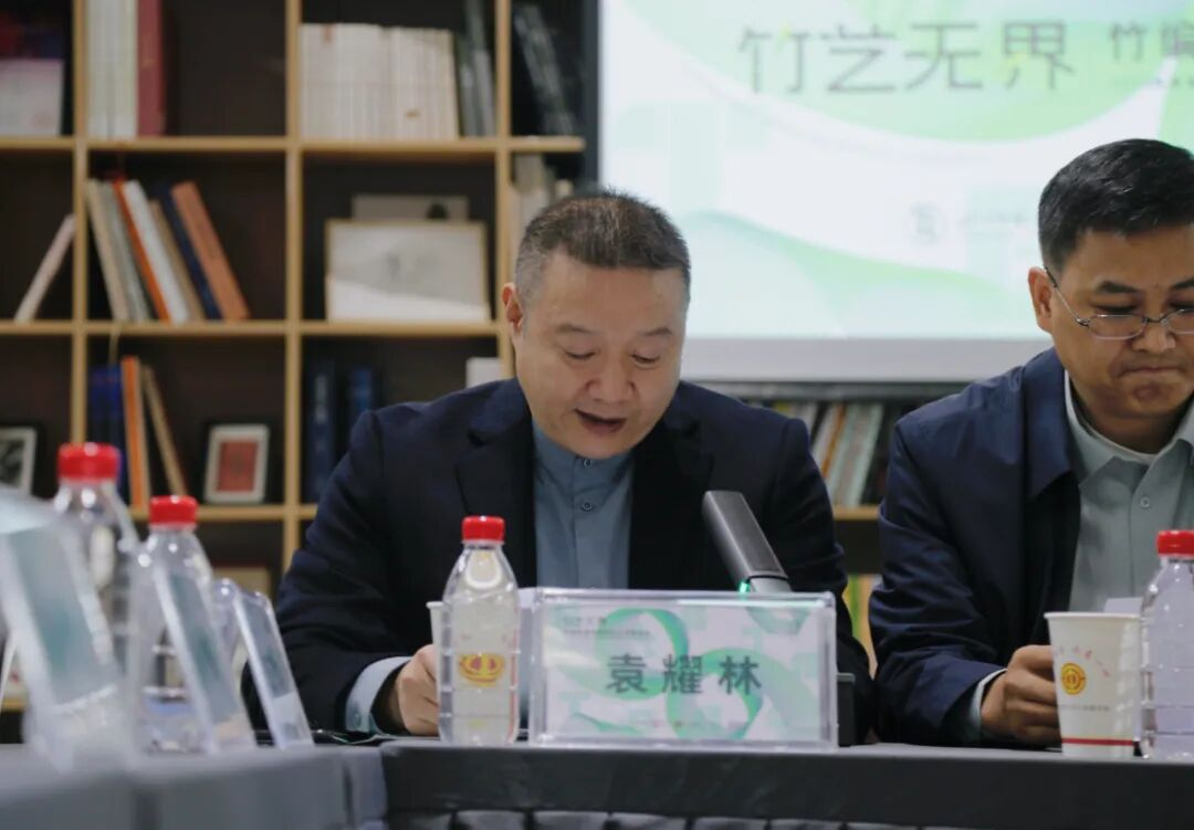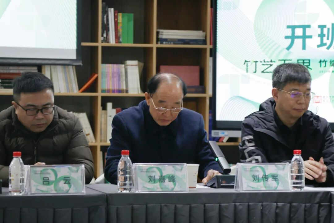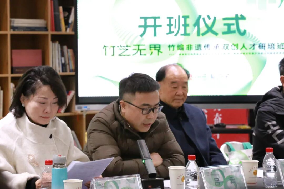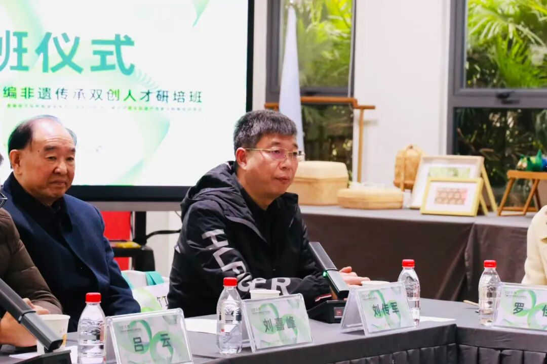 之后,国家级非遗传承人、中国工艺美术大师刘嘉峰致辞,他首先简要阐述了竹资源空间利用的丰富历史,勉励全社会竹编传承人应积极探索竹编与公共艺术、空间设计、现代科技的融合路径,潜心钻研传统工艺精髓,夯实竹编技艺根基。他承诺将带领团队以严谨认真的态度展开教学工作,通过系统化多层次的研修提高传承人在理论和实践中的综合能力,共同推动项目的有效实施和圆满完成。