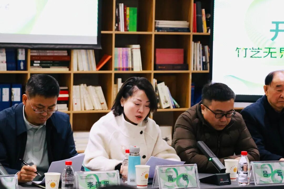 紧接着四川省民间文艺家协会秘书长高敏致辞,她着重指出巴蜀文化内核为竹编非遗传承提供了丰厚滋养与内在动能,其“守正创新、开放包容”的特质孕育出竹编技艺“天人合一”的哲学内涵与“精益求精”的匠人精神。此外,她谈到竹编传承面临的现实困境,肯定研培班“竹艺无界”的主题定位对于民间文艺“活态传承”的积极意义,指出唯有坚守文化根脉、打破形式桎梏,方能让传统技艺在新时代实现活态传承。