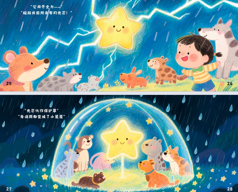 值得关注的是,课程在培养学生综合能力方面成效显著。在 AIGC 技术的辅助下,学生们得以从繁琐的绘画技法重复中解放出来,将更多精力投入到故事构思、角色塑造与情感表达中,创作视野与叙事能力得到显著提升。作品中既可见技术运用的娴熟技巧,更饱含真挚的情感与独特的思考——有的绘本通过温暖的画面传递亲情与陪伴,有的以奇幻叙事引发对自然的敬畏,有的用治愈系风格探讨成长烦恼。这种 “技术 + 创意 + 情感” 的创作模式,让绘本不仅是视觉的盛宴,更成为思想交流的载体,充分展现了 AIGC 时代设计教育 “以技术为翼,以人文为魂”的培养目标。