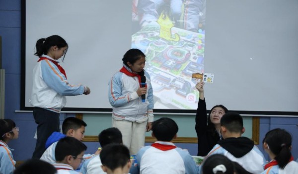 随后,倪晓颖老师带来《参观券的设计》展示课,课程以“为成都设计经典景点参观券”和“精灵导游”为真实任务,打破传统美术课只重技法的局限,培养学生通过历史、科学、信息技术等学科的学习将创意实践核心素养落实在具体的美术实践任务中。课堂上,倪老师通过展示博物馆特展和非遗工坊等不同场景的参观券案例,引导学生认识券面的核心构成要素;再通过试错的方式,让学生判断字体与券面、字体与图形、文字和图形的颜色等的设计方案,让不同能力的学生在不同程度的学习任务中深度参与;课堂尾声,倪老师用AR工具让学生设计的精灵导游活灵活现地展现在现场的景点地图中;再结合学生们现场设计的机械主题、国风主题的参观券,让学生课程作业也得到了全面的展示和评价,充分展现了一线老师利用信息化工具的能力。