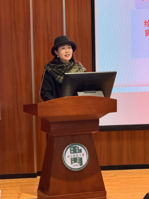 2025年12月11日上午,四川师范大学美术学院•书法学院美术学系在尚美楼学术报告厅成功举办学科教学论学术月活动主题沙龙。本次沙龙以“聚焦素养导向,解锁教学设计路径——基于‘像艺术家一样创作’的课堂教学探索”为主题,旨在探索核心素养导向下美术教育的创新发展方向,推动美术课堂从技法传授向核心素养培育转型。活动特邀成都高新区美术教研员、正高级教师、成都市学科带头人赖雪梅担任主讲,并邀请成都高新区实验小学新川分校周婷老师、成都金苹果公学美术教研组长万梦老师、成都市武侯区代小娅名师工作室领衔人代小娅老师、成都市航天中学校罗修竹老师等一线美术教育专家分享实践经验。整场活动由教学管理办公室主任肖晶主持,美术学系主任李彦瑾、副系主任宁婷、美术学系专任老师及2024级美术学系本科生共同参与。