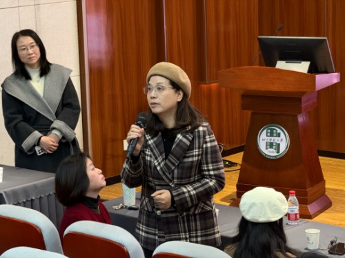互动环节,在场学生围绕“课堂中学生掌握程度差异应对”“低龄学生课堂纪律管理”“AI时代美术教师角色定位”等问题提问,专家们结合教学经验一一解答。针对AI对美术教师技法权威性的冲击,赖雪梅老师提出:“AI无法替代教师的‘具身体验’与‘情感陪伴’,教师的核心价值将从技法传授转向审美判断、文化引领与价值观塑造。”