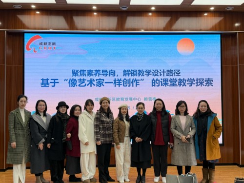 在教师队伍培养方面,赖雪梅老师介绍了成都高新区教师艺术团的建设经验。该艺术团设国画、书法、西画三个分团,采用“专家引领+同伴互助+实践赋能”模式,三年培养数十名省美协会员,教师作品多次在省级重要刊物亮相,为教师专业成长搭建优质平台。