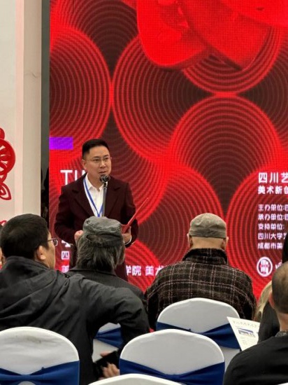 项目负责人陈绍华副教授对项目做简要介绍,本次项目做了一次大胆的尝试,让剪刀与键盘对话。筹备之初,就在思考如何让非遗不只是陈列在展柜里,而是真正走进年轻人的视野?于是我们做了一次跨界实验——邀请传承人与数字艺术家并肩创作,让传统手稿与算法生成同台呈现。展区中那些珍贵的手稿,正是这种对话的见证:从纹样描摹到数字迭代,每一步都记录着传统如何生长出当代的模样。最后,感谢所有传承人、艺术家和策展团队的倾情付出,感谢四川大学美术馆的大力支持,也感谢各位专家的宝贵建议。未来我们将继续深耕,让非遗这颗种子在铸牢中华民族共同体意识的征程中,开出现代表达的新花。