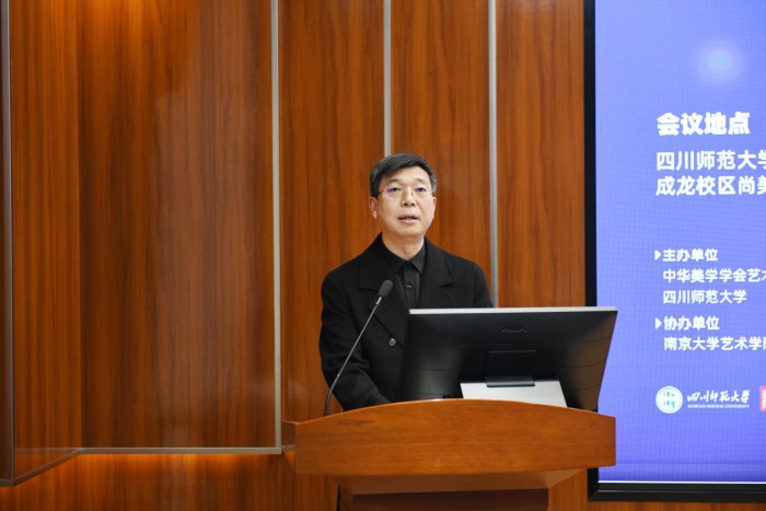 陈佑松教授代表四川师范大学致辞。他高度评价了中华美学会在引领国内美学尤其是艺术哲学研究方面作出的卓越贡献,并系统介绍了四川师范大学在艺术学、哲学学科建设以及在艺术哲学研究方面取得的丰硕成果。他表示,学校将以承办此次年会为契机,持续深化艺术哲学等交叉学科建设,提升人才培养与教育教学质量,努力培养更多兼具哲学思辨与艺术实践能力的跨学科创新人才。