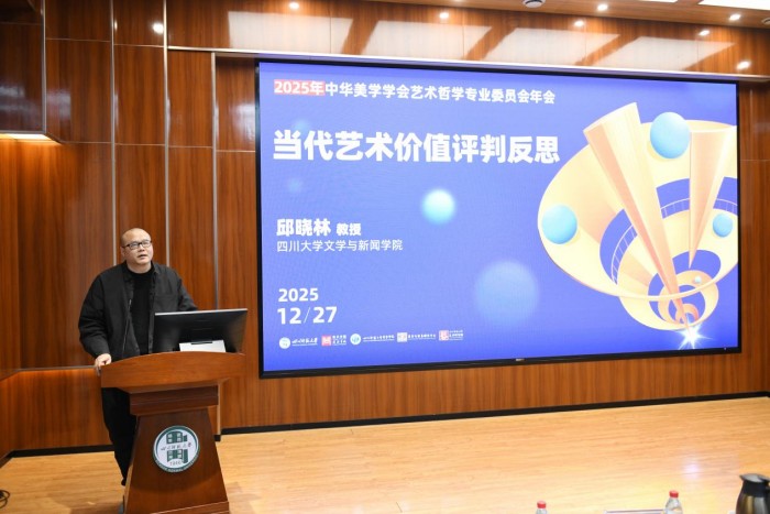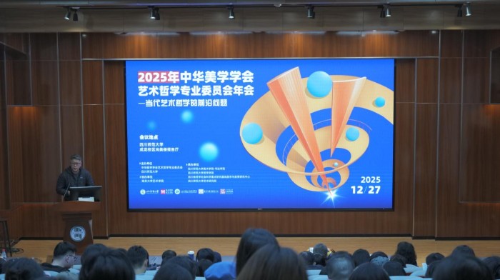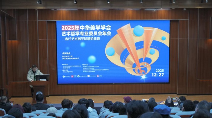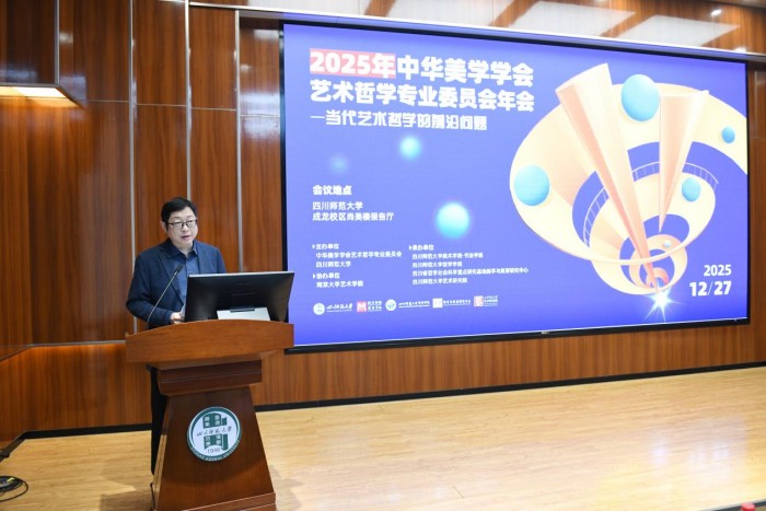 岁末蓉城,暖意融融。学术薪火,熠熠生辉。12月27日,2025年中华美学学会艺术哲学专业委员会年会在四川师范大学成龙校区尚美楼隆重开幕。本次年会由中华美学学会艺术哲学专业委员会与四川师范大学共同主办,四川师范大学美术学院·书法学院、四川师范大学哲学学院,四川省哲学社会科学重点研究基地美学与美育研究中心、四川师范大学艺术研究院联合承办,南京大学艺术学院协办。本次年会以“当代艺术哲学的前沿问题”为主题,共收到来自清华大学、北京师范大学、中国人民大学、复旦大学、山东大学、四川大学、同济大学、兰州大学、中国传媒大学、四川师范大学等高校的学术论文203篇。近百位艺术哲学领域的知名学者与研究骨干齐聚一堂,围绕学科前沿动态展开深入交流,共同探索新时代艺术哲学发展的创新路径。