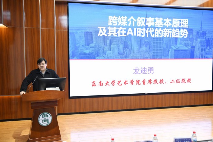 龙迪勇教授作了题为《跨媒介叙事基本原理及其在AI时代的新趋势》的主旨发言。