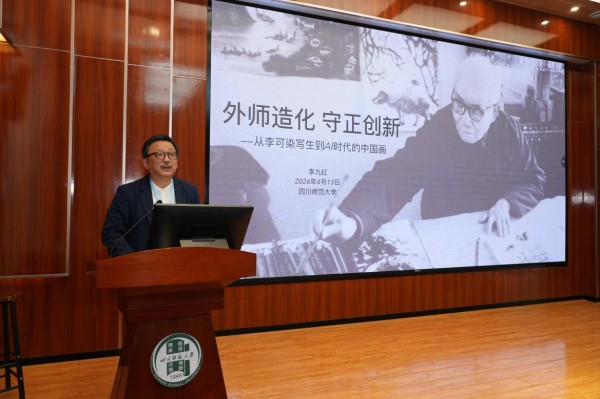 当日上午,活动还举行了高校美术实践教学研究论坛的专家主旨报告环节。中国美术家协会河山画会秘书长、李可染画院秘书长李九红先生,四川省美术家协会主席李青稞女士分别作了精彩的主旨报告,为与会者带来了前沿的学术视角和深刻的行业洞察。报告由美术学院·书法学院院长刘传军主持。