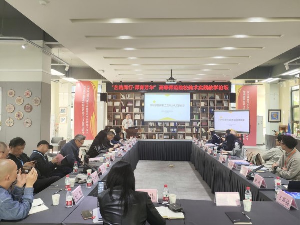 下午,论坛进入院校交流分享环节,由美术学院·书法学院副院长伍妍主持。北京师范大学黎加多副教授、青海师范大学美术学院副院长李懿教授、西北师范大学路浩田老师、阜阳师范大学安萍萍老师、阿坝师范学院美术学院副院长焦凤教授、西昌民族幼专艺术教育系副主任胡云贵副教授、成都师范学院美术学院院长李茜教授、乐山师范学院美术与设计学院院长熊火花教授、川南幼专潘文建老师以及四川师范大学美术学院·书法学院教务办公室主任肖晶老师等十余位来自各参与院校的代表先后发言。大家围绕“协同提质背景下高等师范院校美术实践教学创新与人才培养路径探索”这一主题,就实践教学体系构建、课程思政融入、资源共享机制、写生教学模式创新等议题展开了深入研讨与经验交流,现场气氛热烈,思想碰撞不断。