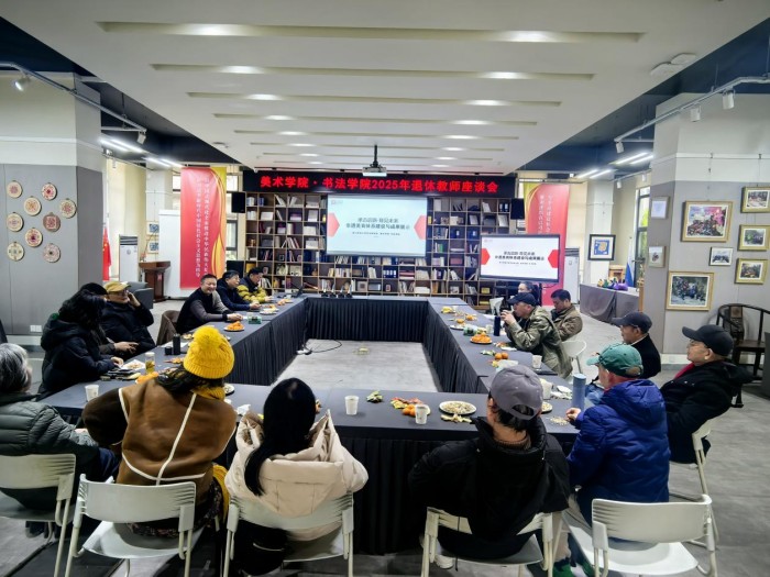 薪火相传念初心,温情座谈话未来。2026年1月20日上午,美术学院·书法学院召开2025年退休教师座谈会。学院党委书记袁耀林,院长刘传军,副院长王兴国、李俊涛,党委副书记罗玉琴出席会议,相关科室、系部负责人参加会议。全体退休教师齐聚一堂,共话学院发展,共忆从教岁月。座谈会由党委书记袁耀林主持。