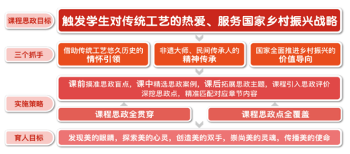 项目自2021年启动以来,立足西南地区非遗产业对拔尖创新人才的现实需求,聚焦拔尖人才培养这一核心任务,围绕课程体系重构、教学方法创新、育人机制优化等关键路径,系统推进综合改革。项目以“非遗融合创新”为着力点,确立了创新、融合、实践、服务、特色“五型合一”的设计人才培养目标,构建了与行业需求同步的多元化课程体系,打造了“四维融通”进阶式实践教学模式,形成了以立德树人为根本、以“非遗美育+思政美育”为抓手的课程思政实施路径,建立了产学研用一体化三师共育师资队伍。