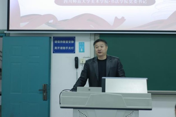 2026年3月18日中午12时50分,四川师范大学美术学院·书法学院在成龙校区第一教学楼C区101教室,召开2025-2026学年第二学期学生干部大会。学院党委书记袁耀林老师、研究生辅导员王琨老师、邓茗洪老师出席本次会议,全体研究生学生会成员及各寝室长参加大会。