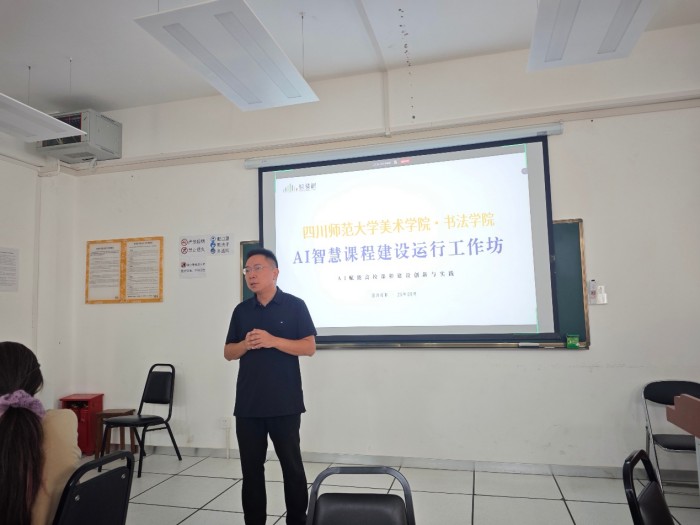 为推动人工智能驱动教育教学改革创新,四川师范大学美术学院·书法学院于2025年9月24日下午携手智慧树网在尚美楼东506实验室举办了“AI智慧课程建设运行工作坊”。我院副院长李俊涛、教学管理办公室主任肖晶以及已建AI智慧课程团队及相关教师参加活动。