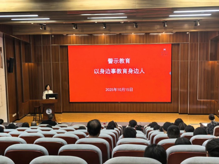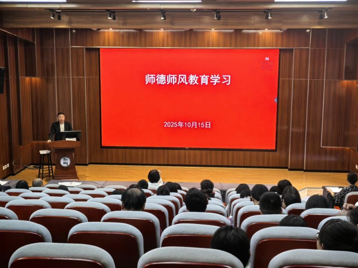 为深入学习贯彻习近平总书记关于教育的重要论述,大力弘扬教育家精神,持续强化师德师风建设,10月15日,学院在尚美楼学术报告厅召开师德师风建设会,通过树立正面典型与剖析反面案例相结合的方式,激励全体教师见贤思齐,同时引以为戒,筑牢师德根基。学院党委书记袁耀林主持会议并讲话,全体在家院领导出席会议,全体教职工参加会议。