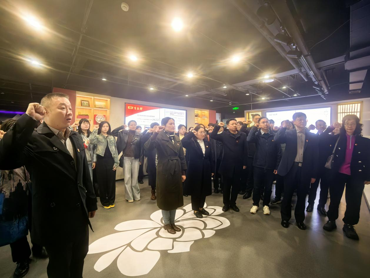“我志愿加入中国共产党,拥护党的纲领,遵守党的章程……”在庄严肃穆的育廉馆大厅,面对鲜红的党旗,全体党员高举右拳,在学院党委书记袁耀林的带领下,重温入党誓词。铿锵有力的誓言回荡在展厅,表达了全体党员对党的无限忠诚和坚定信念,以及为党和人民事业奋斗终身的决心。大家纷纷表示,将时刻牢记党员身份,自觉践行入党誓词,永葆共产党员的先进性和纯洁性。
