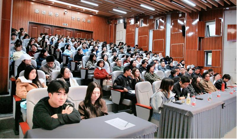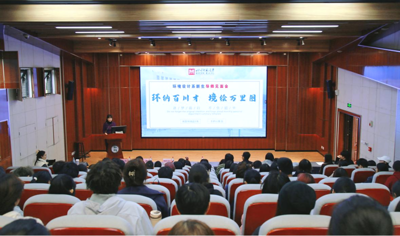 2025年11月5日,四川师范大学美术学院·书法学院环境设计系2025级新生导师专场见面会在四川师范大学成龙校区尚美楼学术报告厅顺利召开。活动以“环纳百川才·境绘万里图”为主题,以“师生对接+校友赋能”的特色形式,为新生搭建起专业认知与职业规划的交流平台,彰显学院“五美育人”的办学理念。环境设计系全体教师、2025级新生和多位优秀校友嘉宾参与此次会议,会议由环境设计系主任袁园老师主持。