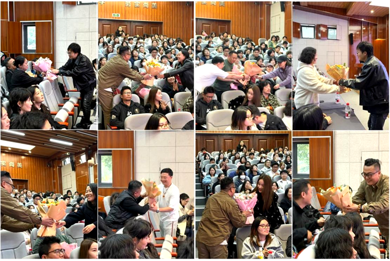 会议伊始,袁园老师逐一介绍了环境设计系26位专业教师的研究方向、学科背景与教学科研成果,让新生对全系师资力量形成全面认识。随后,三位优秀校友代表全体同学向教师们献花,师生间的互动,藏着教育最本真的温度;当曾经的学子以优秀之姿回望,将鲜花轻递到老师手中,这束花便成了跨越岁月的信物——它映照着师者的无私付出,也诠释着学子的感恩之心,让“尊师重道”不再是一句口号,而是看得见、摸得着的深情。