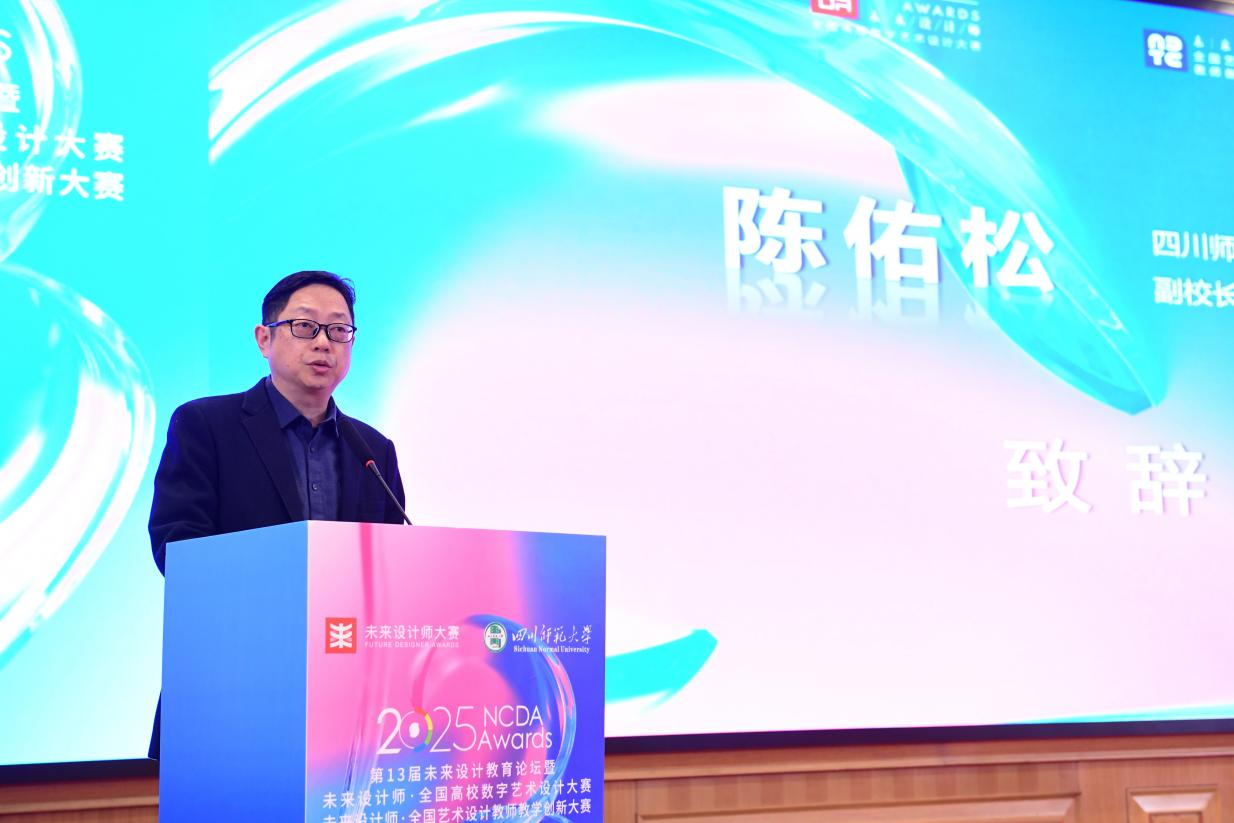 四川师范大学副校长陈佑松教授在致辞中表示,能够承办本次国内设计教育领域极具影响力的学术盛会,学校对此深感荣幸。期待各位嘉宾能够充分交流、集思广益、共享经验,不断深化教育理念的转变,让论坛成为凝聚共识、共享资源、共谋发展的重要纽带。