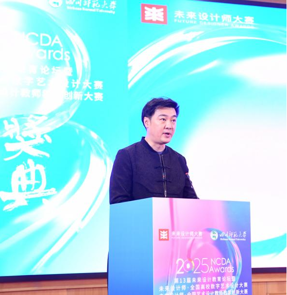 初冬的蓉城暖阳如沐、银杏金黄,千年锦官城的文脉底蕴与时尚之都的创新脉动交相辉映,涌动着生生不息的设计活力。11月23日,由未来设计师大赛组委会、民政部智惠乡村志愿服务中心、工业和信息化部人才交流中心、四川师范大学主办,我院承办的第13届未来设计师教育论坛暨全国高校数字艺术大赛颁奖典礼盛大启幕!本次盛会群贤毕至、少长咸集,汇聚了来自国内外顶尖设计院校的专家学者、行业领军企业代表及优秀设计师学子,共襄一场关于设计教育未来的思想盛宴与荣耀加冕,现场气氛热烈,盛况空前。