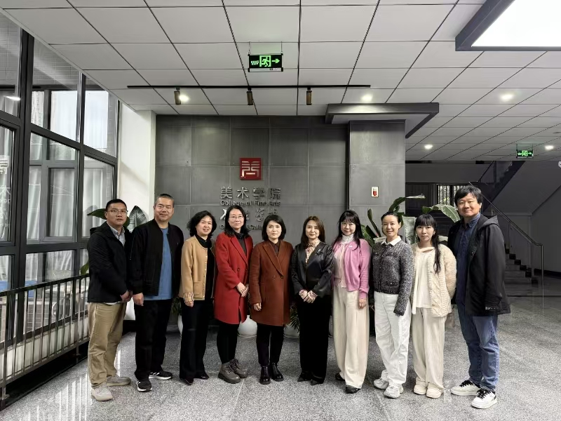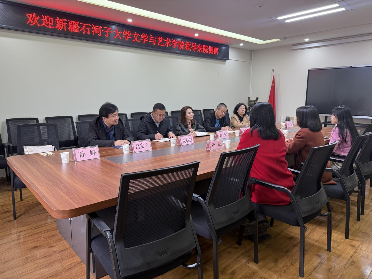 2025年11月11日下午,新疆石河子大学文学艺术学院副院长杜瑶教授一行六人莅临我院考察交流。艺术研究院副院长伍妍,学院教学管理办公室主任肖晶,环境设计系主任袁园参与座谈,共同探讨新时代艺术教育的高质量发展路径。