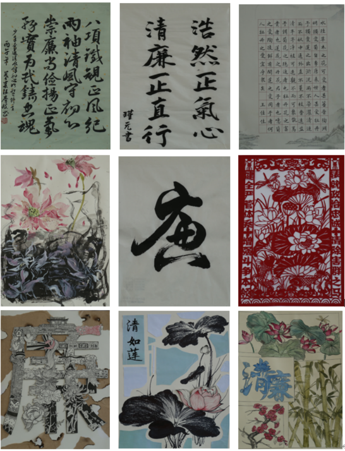 本次作品展汇集各学院选送的优秀廉洁文化作品共115件,涵盖书法、绘画、剪纸、海报等创作类别,同学们以笔为媒、以墨为韵、以画为鉴,将清廉理念融入艺术创作。学生作品立足廉洁文化题材,主题突出、形式丰富、意蕴深远,生动展现了崇廉尚洁、风清气正的校园风尚。让我们在一幅幅作品中驻足品鉴,感受清风正气的浸润,共同营造学廉、思廉、践廉的浓厚氛围,让廉洁之花在校园绚烂绽放。